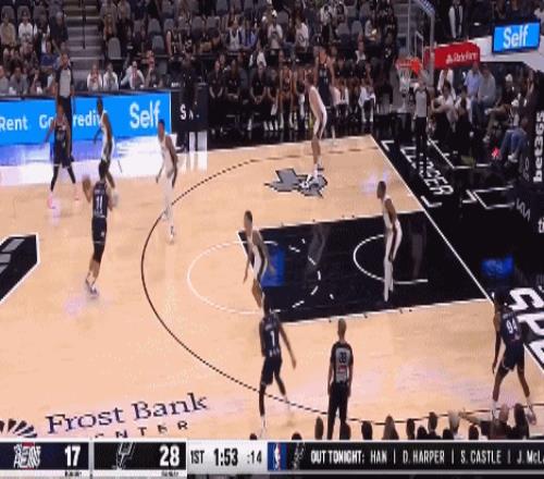 值得一提的是陈国豪,在马刺4名球员的包围中成功补篮,国内球员唯一得分上双。