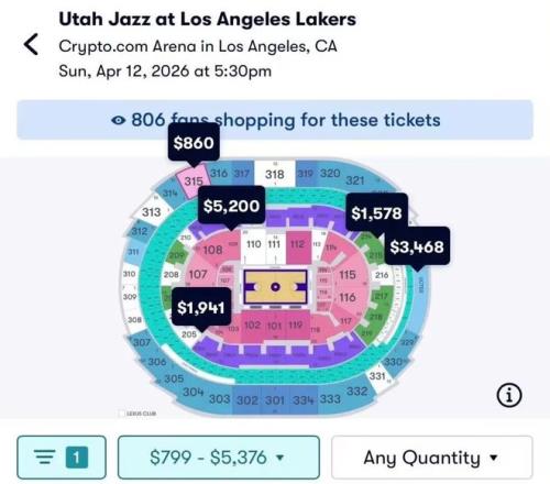 老詹的预告发出后,爵士的最低票价暴涨