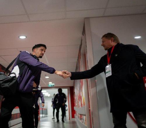 老舒督战!曼联传奇门将舒梅切尔来到通道和曼联众将打招呼