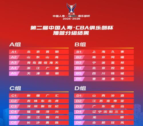 CBA俱乐部杯赛赛区抽签出炉:A组长沙少1队D组武汉辽粤大战