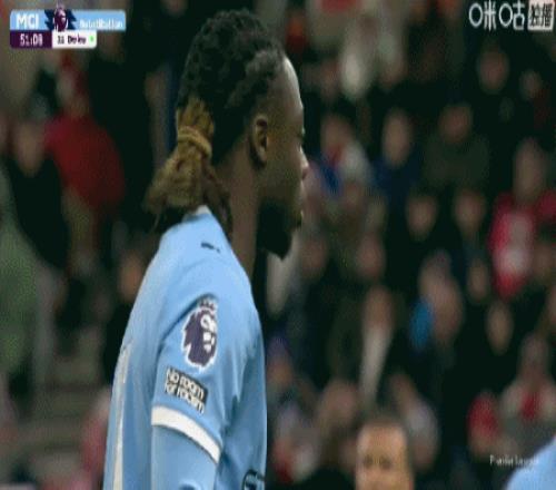 第45+4分钟,阿丁格拉背后放倒福登,被裁判黄牌警告